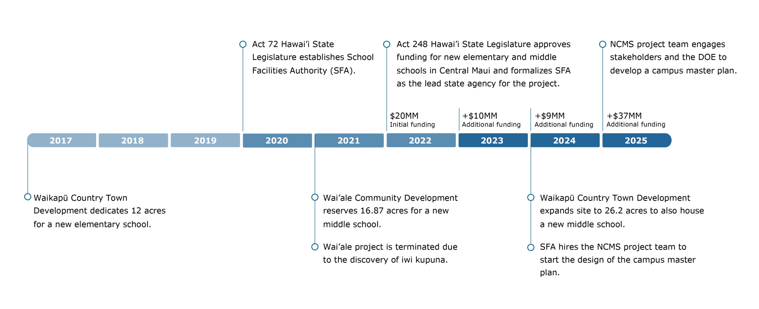 Following the Hawai‘i State Legislature's approval of funding for new elementary and middle schools in Central Maui, SFA is leading the development process. SFA has been charged by legislators to develop and utilize standards-based designs and specifications that enable accelerated construction. SFA will manage all aspects of this project, including community engagement, master planning, design, and construction, to ensure the timely delivery of these vital educational facilities.